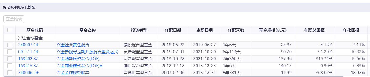 在兴证全球基金任职期间,董承非先后管理过5只产品,其中在管时间最长的是兴全全球视野股票。同花顺iFinD数据显示,董承非管理该产品的8年多时间里的任职总回报为368.02%,年化回报为18.92%。