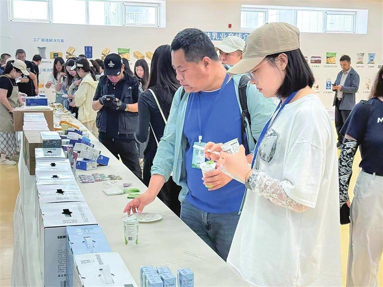 记者们品尝甘肃传祁甘味乳业有限责任公司生产的乳制品。