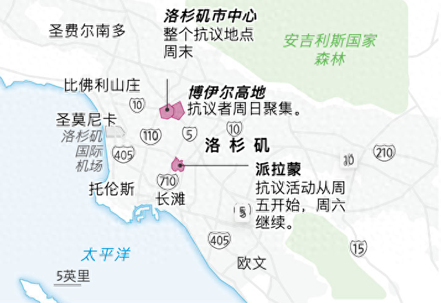 6月6日和7日,示威者走上洛杉矶和附近城市派拉蒙和康普顿的街头,抗议美国移民和海关执法局的突袭行动。