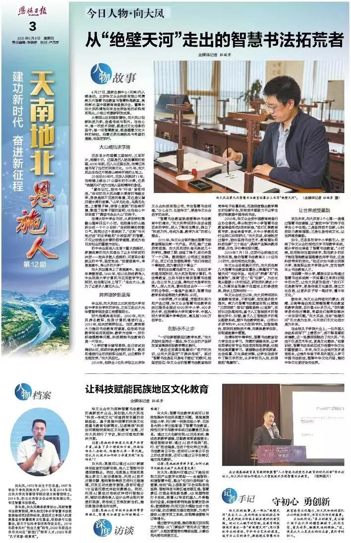 从鄂西山区到国际舞台,向大凤以创新科技为桥,连通传统与现代。在他心中,每一次技术突破,都是对文化传承的坚守;每一间智慧教室,都是播撒文化火种的驿站。沿着这条充满挑战与希望的道路,他坚定前行。