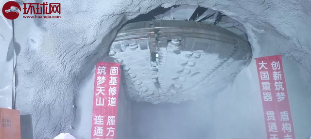 借助动画垫片和实景展示,网友得以全景、立体观看到"首创号"竖向掘进机犹如钢铁巨龙竖向掘穿天山。