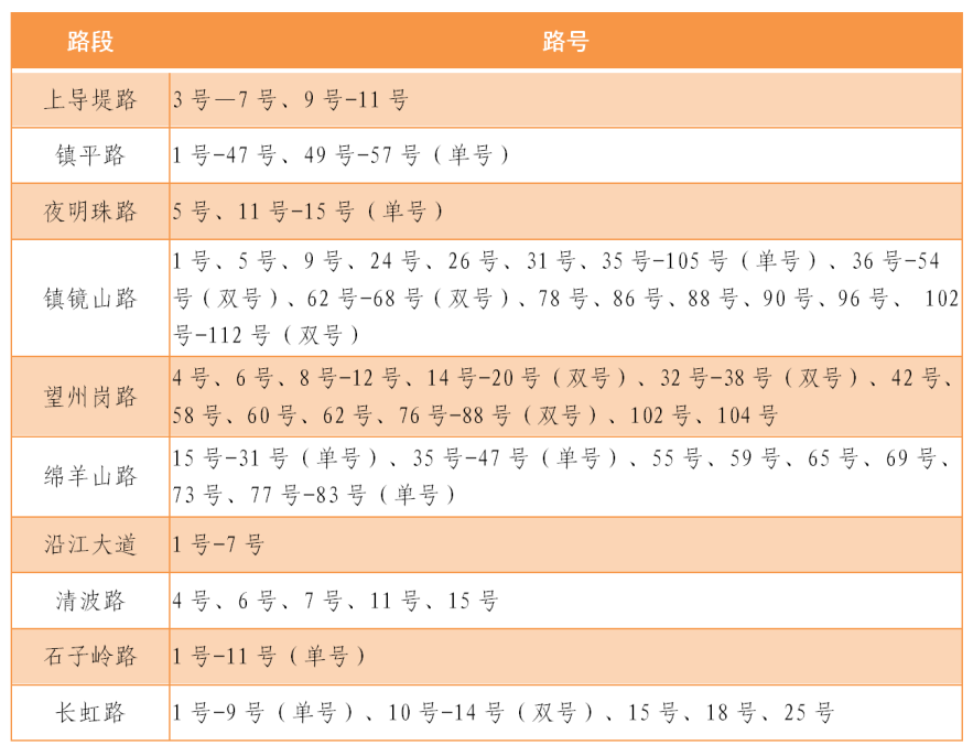 七里新村1-6网格,虎牙社区1-4网格,长江新村社区1-7号网格,鸡山社区1-8网格,六泉湖社区1-6网格,六泉湖社区7网格七里冲路以北。