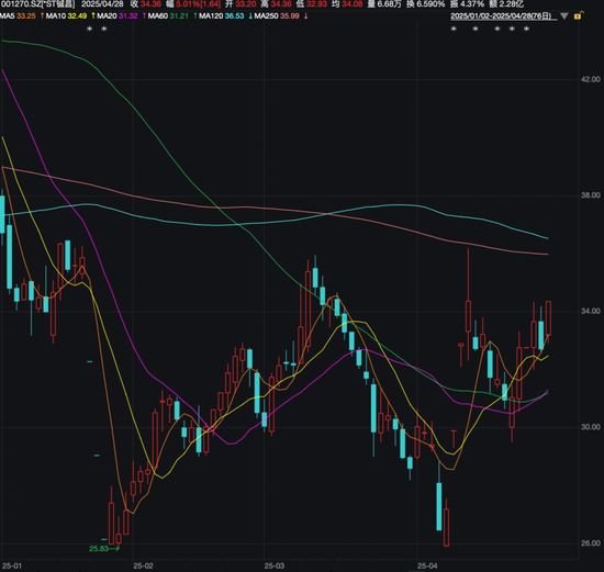 虽然一季度*ST铖昌股价下跌近25%,但二季度以来该股已经反弹20%左右。