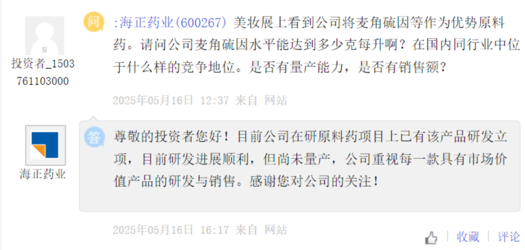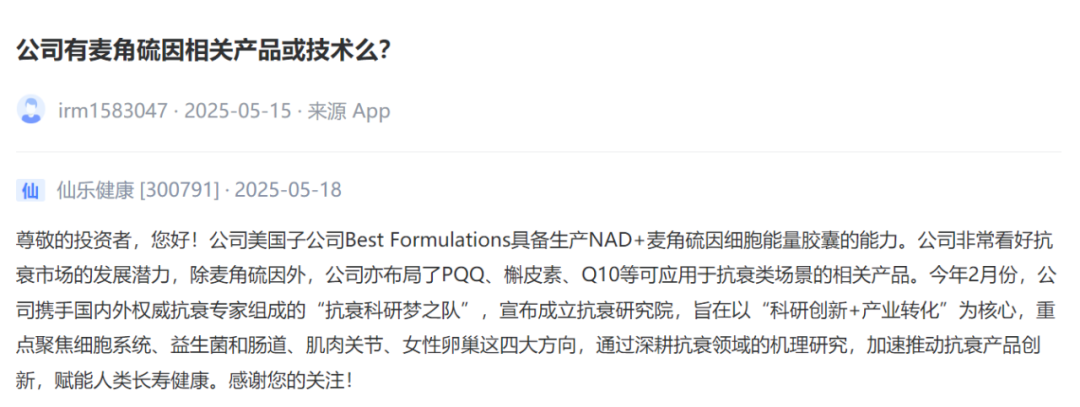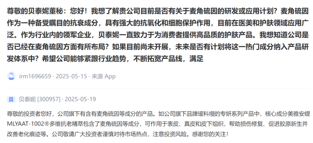 我想知道公司是否已经在麦角硫因方面有所布局?如果目前尚未开展,未来是否有计划将这一热门成分纳入产品研发体系中?希望公司能够紧跟行业趋势,不断拓宽产品线。