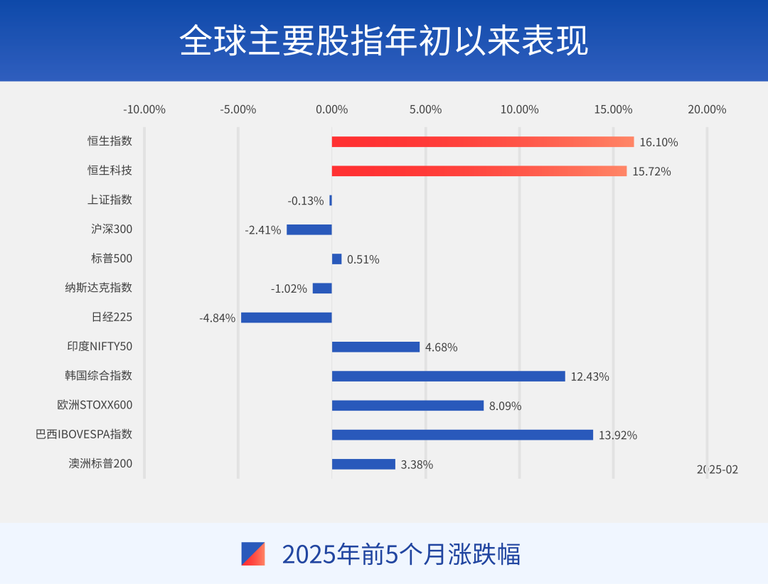 先来看数据:Wind显示,2025年前5个月,恒生指数上涨16.10%,恒生科技指数涨15.72%,领涨全球主要股指。尽管受外部关税政策扰动,港股行情一度出现波动,但4月以来整体回暖趋势显著。本期财通观市将围绕港股市场今年以来的新变化、新趋势、新思路展开探讨。