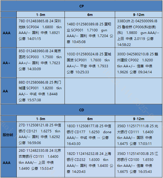 【1.76】25滨湖建设SCP008 0.25Y 2e AA+/-- 【1.5-2】