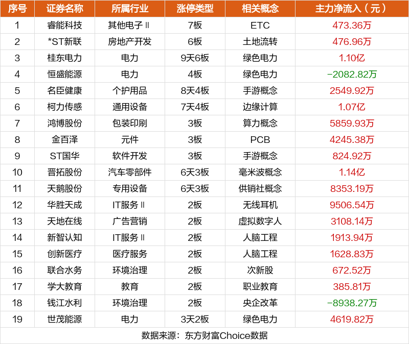 5月29日,两市震荡分化,沪指小幅反弹,创业板指延续调整创年内新低。涨停家数方面,今日合计有41股涨停,上个交易日52股涨停。其中,ETC睿能科技7板,土地流转*ST新联6板,绿色电力桂东电力9天6板。