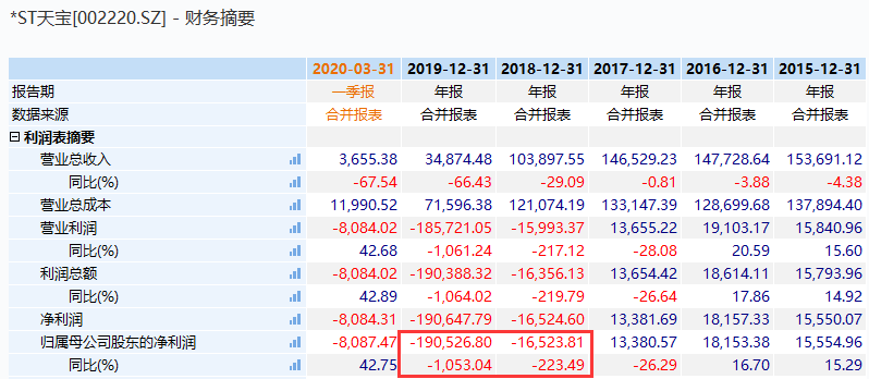 事实上,真正让ST天宝走上不归路的是,2018年的业绩。