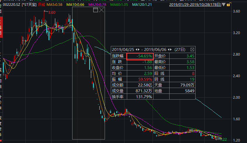 糟糕的业绩让投资者用脚投票。终于,*ST天宝在2020年4月30日至2020年6月2日连续二十个交易日每日收盘价均低于1元,面临终止上市的结局。