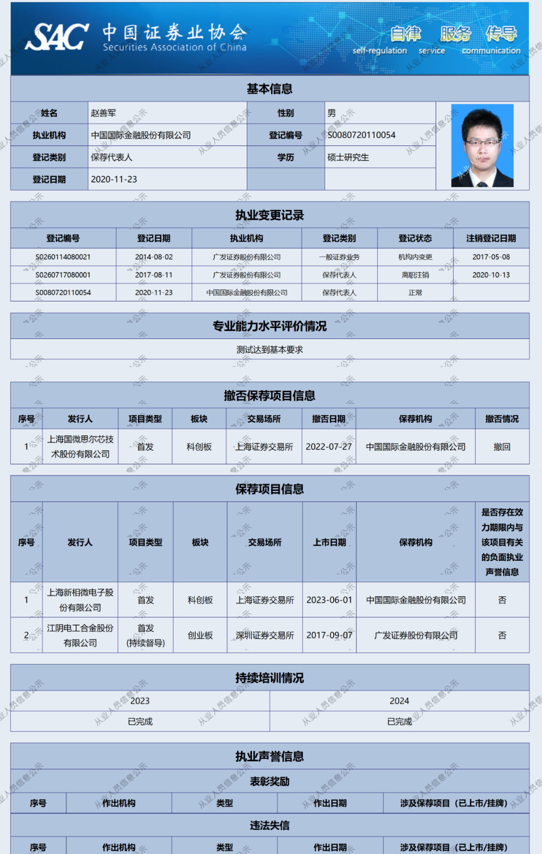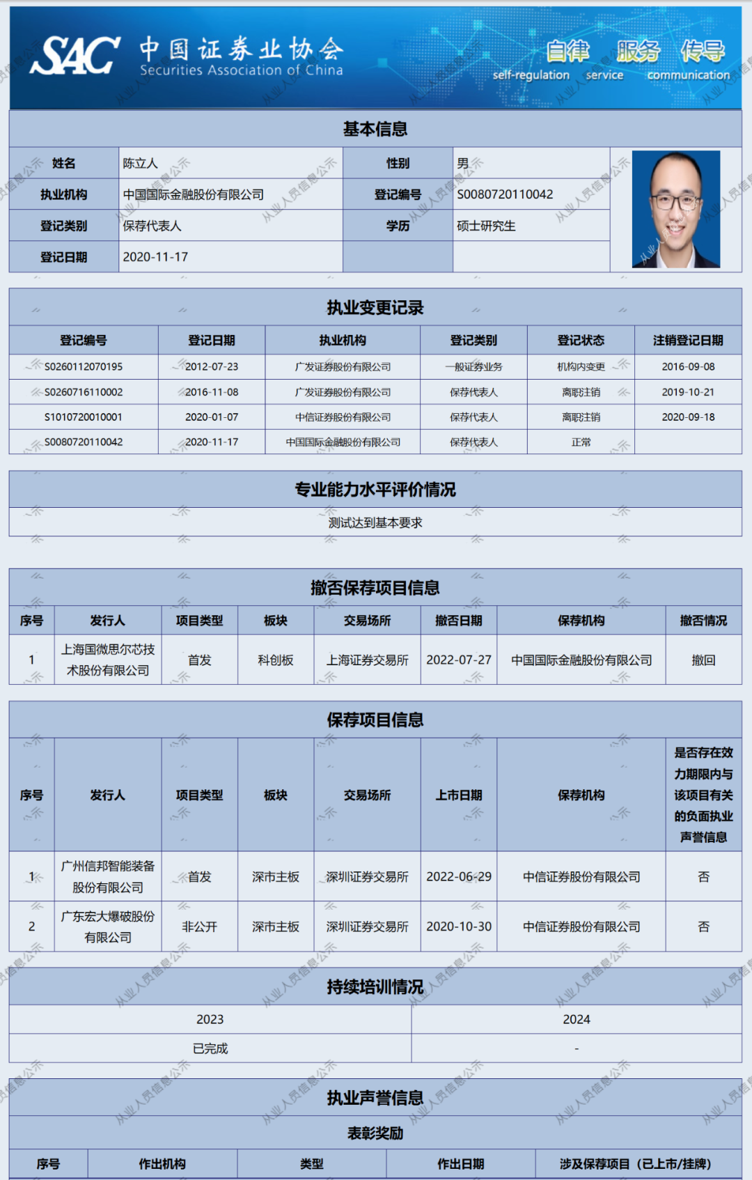 根据《证券公司保荐业务规则》规定,建立保荐代表人名单分类机制,分类公示保荐代表人综合执业信息。