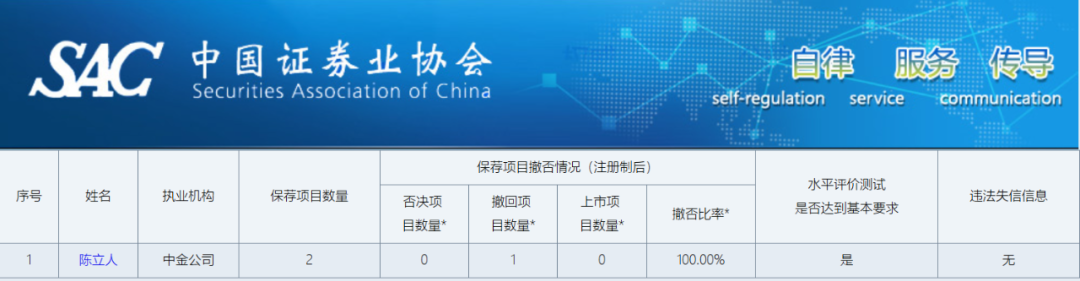 *本名单公示的保荐代表人撤否项目和上市项目数量仅包括沪深北交易所各板块实施注册制以后的保荐项目,撤否比率=(撤回项目数量+否决项目数量)/(撤回项目数量+否决项目数量+上市项目数量)。