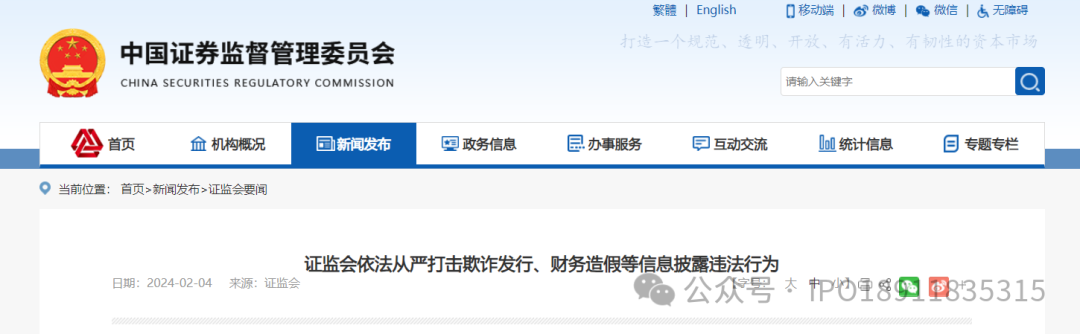 证监会依法从严打击欺诈发行、财务造假等信息披露违法行为