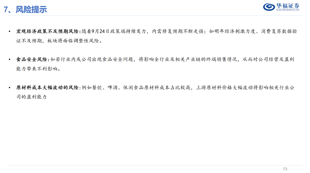 宏观经济政策不及预期、食品安全问题、原材料成本大幅波动等风险