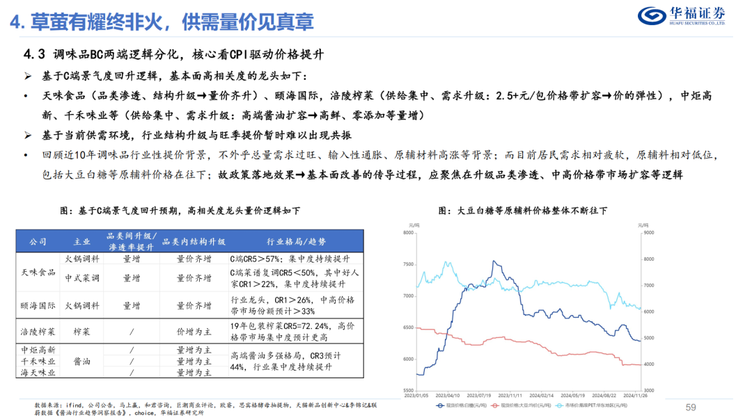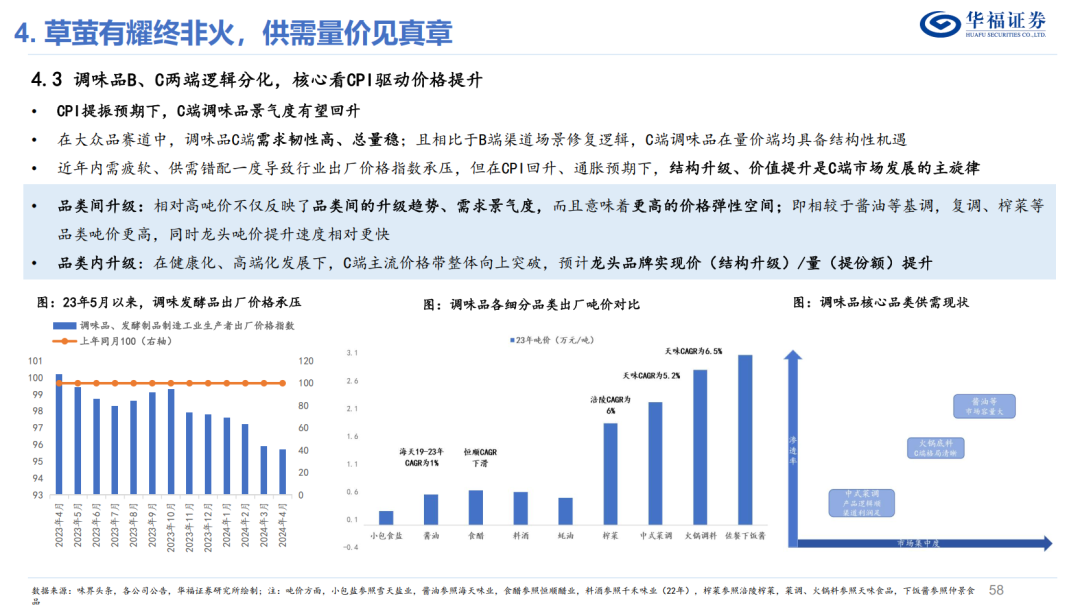 草萤有耀终非火,供需量价见真章:调味品推荐中炬高新、天味食品、雪天盐业; 零食建议关注甘源食品、西麦食品
