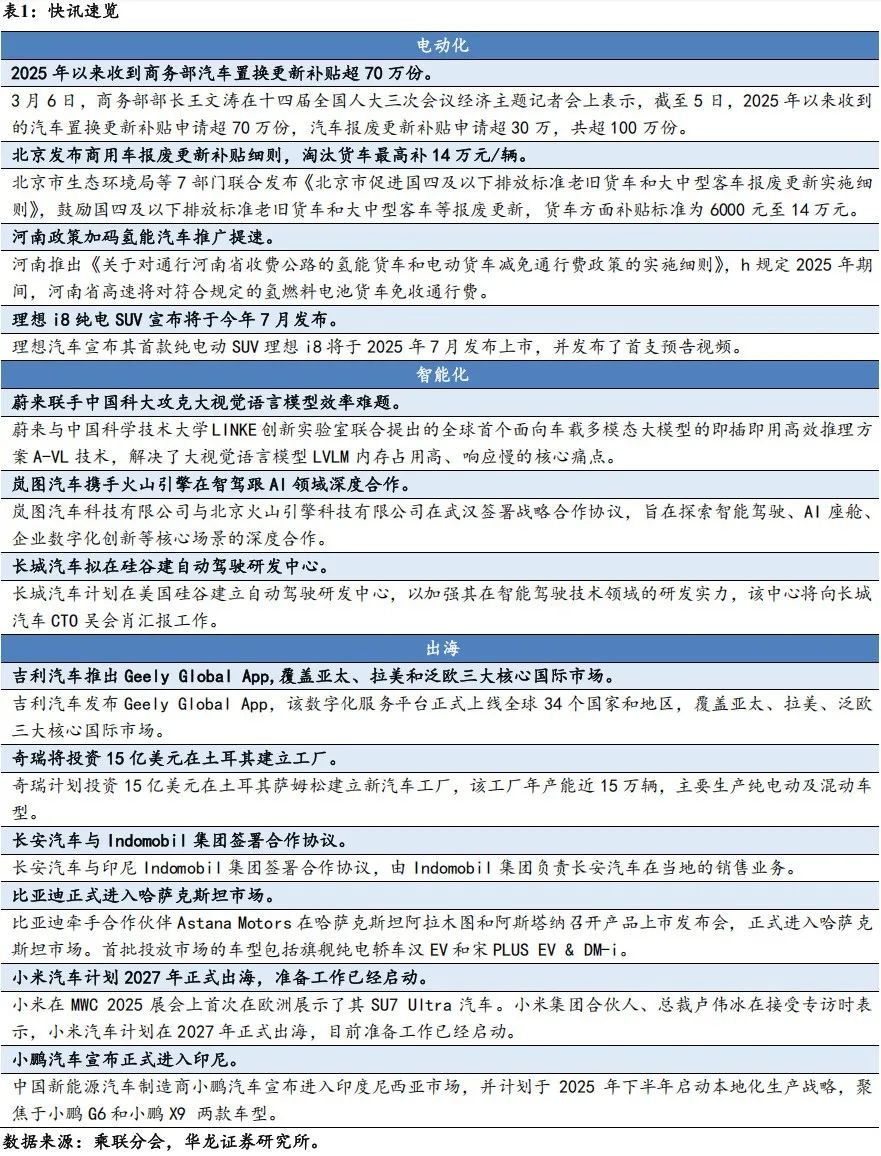 行业动态:行业要闻,一是吉利跟进智驾平权,发布“千里浩瀚”安全高阶智驾系统;二是文远知行落地欧洲首个公开道路自动驾驶商业化部署。上市车型,吉利银河E8和比亚迪元PLUS等车型上市。
