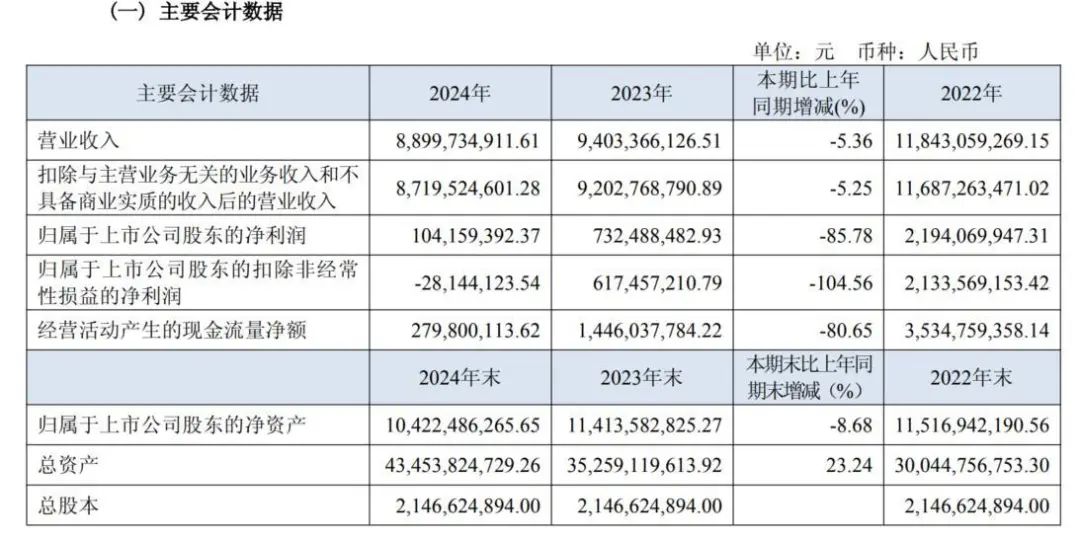 2024 年,公司原煤产量完成 3,837 万吨,同比降低 16.41%。外购统销煤炭336 万吨,同比增长 146.42%。商品煤销量 3,554 万吨,同比降低 13.32%,其中洗块煤 376 万吨,同比降低5.89%;洗末煤 207 万吨,同比增长 88.39%;末煤 2,494 万吨,同比降低 24.90%;煤泥销量141 万吨,同比增长 5.66%。发电量完成 586,370.01 万千瓦时,同比增长 242.93%。供热完成289.37 万百万千焦,同比降低 7.36%。煤炭综合售价 567.04 元/吨,同比降低 6.40%。营业收入 250.60 亿元,同比降低 12.13%,其中煤炭产品销售收入201.54 亿元,同比降低18.86%。营业成本 164.32 亿元,同比增长 4.58%,其中煤炭产品销售成本 120.48 亿元,同比降低0.61%。利润总额 36.15 亿元,同比减少 42.73 亿元,降低 54.17%。归属于母公司所有者的净利润 22.25 亿元,同比减少 29.55 亿元,降低57.05%。掘进总进尺 163,048 米,同比增加 9,171 米,增长 5.96%。
