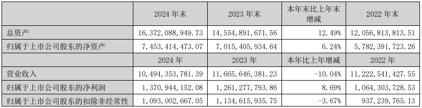 公告显示,2024年欧派家居实现营业收入189.25亿元,同比下降16.93%;归母净利润为25.99亿元,同比下降14.38%;扣非归母净利润为23.16亿元,同比下降15.65%。