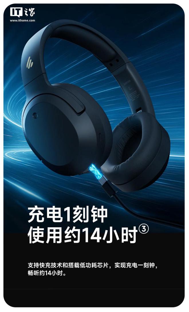 其他方面,该耳机采用蓝牙 5.4技术,支持双设备连接,拥有83小时续航(号称充电15分钟使用约14小时)。