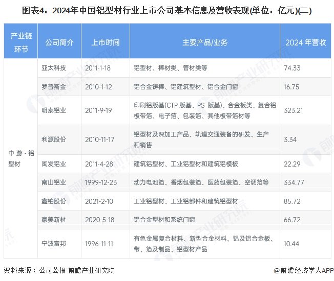 本文核心数据:中国铝型材行业上市公司汇总;业绩比较;发展规划等
