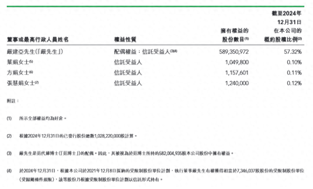 据巨子生物2024年财报,夫妇二人在公司持有股权比例达到了57.32%。根据企查查数据,股权穿透后严建亚通过三森实业、西安鹏辉及直接控股等,实际持股13.77%。