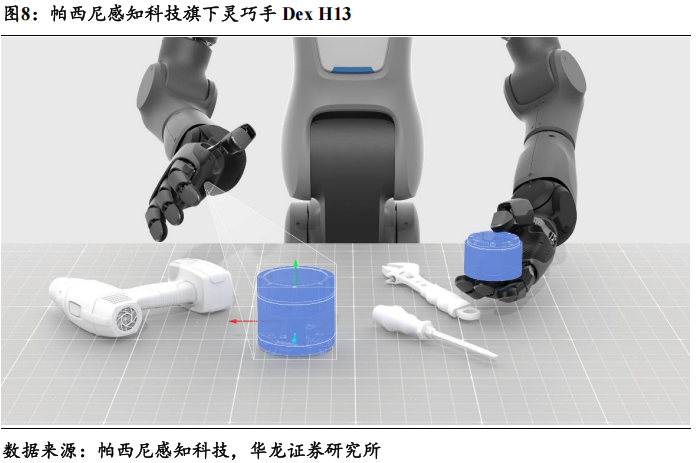 帕西尼发布的全球首款“多维触觉 +AI视觉”双模态机器人末端一多维触觉灵巧手DexH13,单手集成1140个ITPU多维触觉传感单元,能够实现多维阵列力感知及材质、温度、纹理等15种物理属性实时解析。同时,创新采用4指16自由度(13主动+3被动)仿生机械结构设计,其中拇指独立4主动自由度,在省去冗余小拇指的基础上,可完成超90%的核心手部动作。