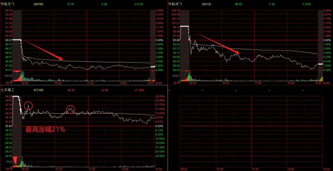 因为军工大票这边沈飞、成飞都是无溢价低开低走,但为什么七丰精工还能冲到20%?