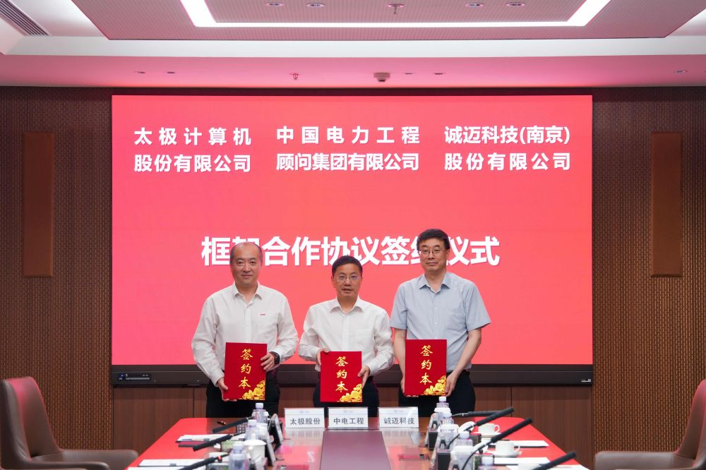 5月13日,太极计算机股份有限公司与中国电力工程顾问集团有限公司(以下简称“中电工程”)、诚迈科技(南京)股份有限公司(以下简称“诚迈科技”)在北京正式签署战略合作协议。中国能建首席科学家、中电工程党委书记、董事长罗必雄,太极股份总裁仲恺,诚迈科技董事长王继平出席签约仪式并展开座谈交流。此次合作标志着能源电力、信息技术、智能操作系统领域的领军企业强强联合,将在数字化转型、信创产业、人工智能等领域展开深度协同,共同为数字中国建设注入新动能。