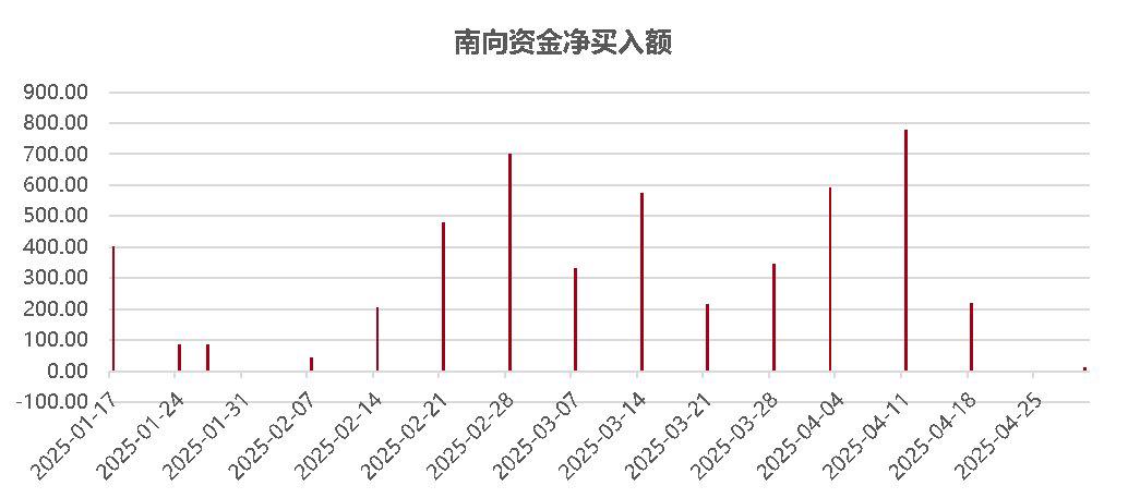 各路资金积极流入港股,成为港股上涨的主要推动力。根据iFinD数据,截止2025年4月30日,今年来南向资金净买入额超5075.98亿元。另外,根据中信建投证券研报,2025年一季度,主动偏股基金对港股的配置相比上季度末提升5.2个百分点,港股配置比例超过30%,达到近五年新高。