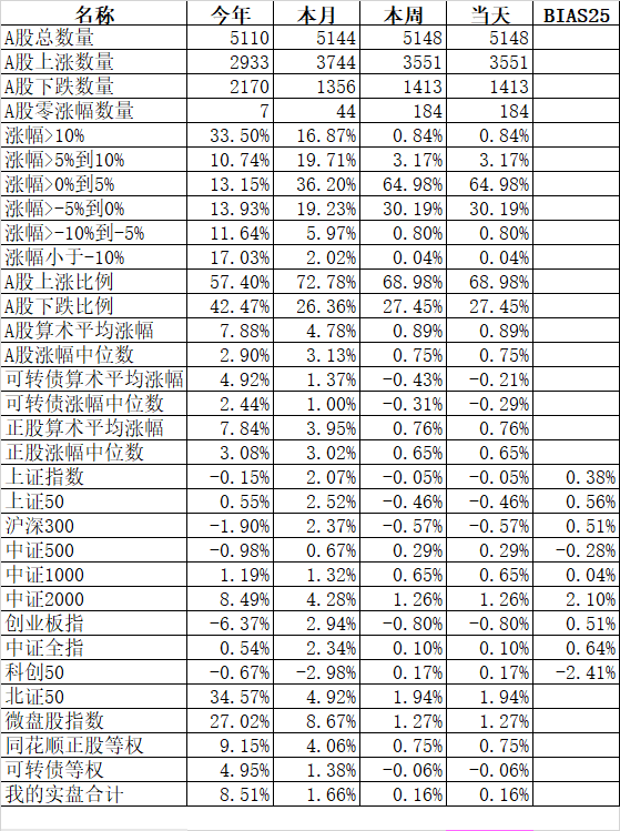 今天没有任何操作,因为小账户涨的多,所以最终账户合计实际上涨0.16%。
