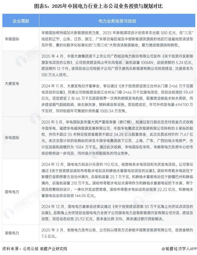从2025年各企业最新投资布局来看,我国电力企业未来将加速向新能源转型,华能国际等加大新能源投资,建设大型清洁能源基地;大唐发电等在发展新能源的同时推进传统能源清洁高效利用;华电国际通过重组整合优化布局;国电电力注重水电与新能源融合开发;浙能电力探索聚变能源等前沿技术。整体呈现出加大新能源投入、推动传统能源升级、强化资源整合协同、探索新技术等多维度发展趋势,助力能源结构清洁低碳转型与行业高质量发展。