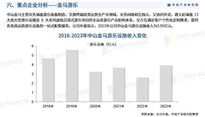 中山金马主营业务涵盖游乐装备制造、文旅终端投资运营全产业领域,业务间既相互独立,又协同并进,建立起涵盖 13 大类大型游乐设施及 8 大系列虚拟沉浸式游乐项目的全品类游乐产品矩阵体系,全方位满足客户个性化定制需求,提供各类高品质游乐设备的一站式配套服务。公司年报显示,2023年公司中山金马游乐设施收入为3.95亿元。