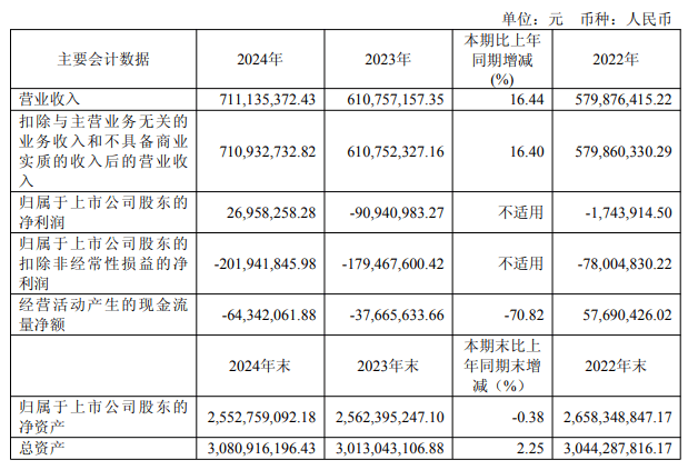 福昕软件2024年实现营业收入7.11亿元,同比增长16.44%;归属于上市公司股东的净利润2695.83万元;归属于上市公司股东的扣除非经常性损益的净利润-2.02亿元;经营活动产生的现金流量净额-6434.21万元。