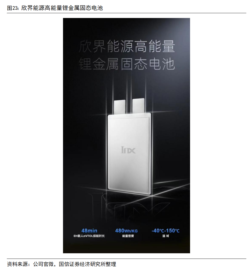 固态电池技术方面,EH216-S完成首次eVTOL固态电池飞行试验。2024年11月,亿航智能宣布在高能量固态电池技术开发领域取得重大突破。在国际先进技术应用推进中心(合肥)低空经济电池能源研究院的支持下,由亿航智能及其投资的领先锂金属固态电池供应商欣界能源联合研发的固态电池,搭载在EH216-S,成功完成了首次eVTOL固态电池飞行测试,飞行时长达到48分10秒,续航时间显著提升60%—90%。与液态锂电池相比,固态电池具有更高的能量密度、更好的热稳定性、更低的易燃性、更宽的工作温度范围、更高的存储稳定性以及绝佳的免维护特质。该高性能固态锂电池采用金属锂作为负极,氧化物陶瓷作为电解质,具备更高的能量密度和安全性。其能量密度达480 Wh/kg,稳定性极佳,不仅大大提升了EH216-S的飞行性能,同时极大地扩展了未来低空应用的实践场景,尤其是在长距城市空中交通、低空物流运输、高层消防应急等多个领域展现了广阔的应用前景。亿航智能将与欣界能源继续深入合作,进一步测试和优化其性能和稳定性,目标争取在2025年底前实现固态电池在EH216-S的认证和装机量产。