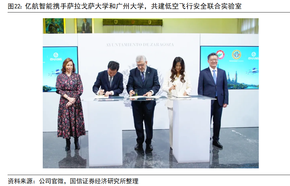 2025年3月5日,亿航智能宣布与西班牙萨拉戈萨大学和中国广州大学签署合作备忘录,三方将携手共建低空飞行安全联合实验室,推动低空经济、智能空中交通管理等领域的创新研究,旨在为全球城市空中交通的发展提供坚实的支持。广州市与西班牙萨拉戈萨市都是亿航智能城市空中交通战略合作城市。此次合作既是亿航智能与两座城市在低空经济领域进一步深化合作的关键,也是企业与高校资源结合的一次强强联合。合作将充分发挥高校与企业合作的特点,整合各方优势资源,共同探索科研、教学及应用合作的有效模式与路径,以推动低空经济和城市空中交通发展。