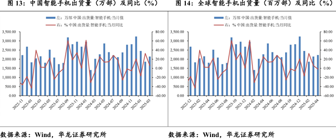2025年4月,我国智能手机出货量2229.4万部,同比下降1.7%;2025 年第一季度全球智能手机出货364百万部,同比增加1.5%,增速连续七个 季度同比正增长,智能手机出货量复苏明显。