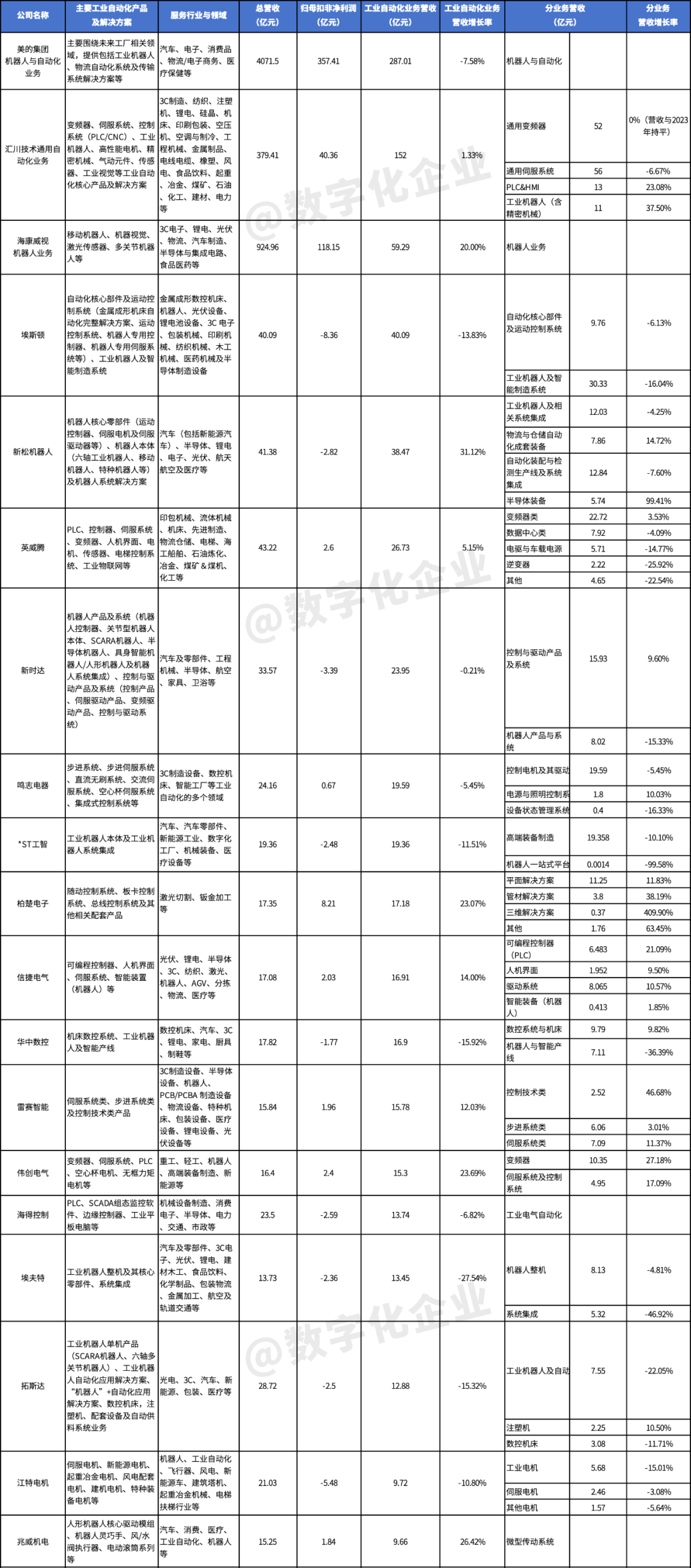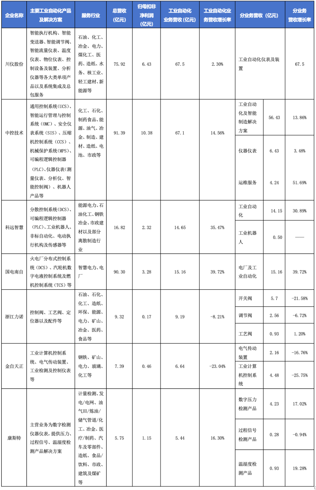 表2流程自动化领域上市企业工业自动化业务营收情况