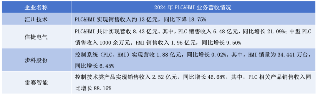 例如,无锡信捷电气于2024年实现PLC销售收入6.48亿元,同比增长21.09%。其小型PLC产品在中国市场的份额为9.5%,较2023年提升2个百分点,位列内资品牌第二名,仅次于汇川技术,继续保持在小型PLC领域的领先地位。雷赛智能作为驱动产品和PC-based产品市场的头部厂商,近年来逐步进军PLC市场,并凭借出色的表现成为PLC市场的增长“黑马”,市场份额和市占率均实现了显著增长。2024年,其PLC相关产品销售收入同比增长88.16%;运动控制小型PLC产品的市占率,攀升至国内品牌第三位。