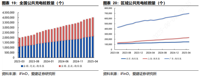截至2025年4月,全国充电桩3,991,624个,其中区域性充电桩广东717,692个,上海239,931个,北京152,686个,蔚来公共充电桩23,290个。我国充电基础设施快速发展,已建成世界上数量最多、服务范围最广、品种类型最全的充电基础设施体系,有力保障新能源汽车出行充电需要。