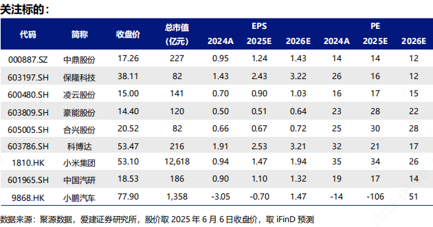 本文摘自:2025年6月10日发布的《汽车行业周报:长安汽车分立成央企,电动智能自主品牌加速成长》