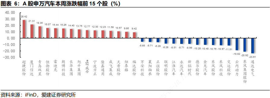 2)跌幅前5个股:通达电气(-23.61%)、东风集团股份(-20.92%)、云内动力(-18.82%)、交运股份(-11.51%)、东风科技(-10.97%)。