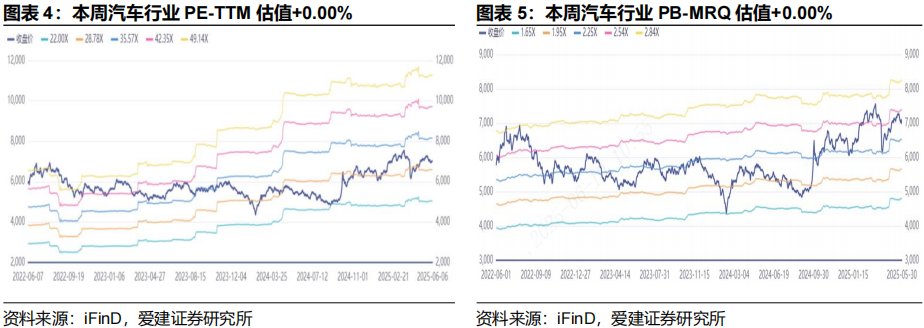 估值方面,截至6月6日收盘,汽车行业PE(TTM)为30.44倍(上周为30.38倍);汽车行业PB(MRQ)为2.40倍(上周为2.40倍)。