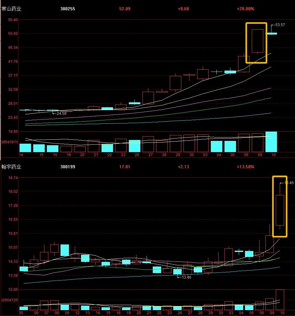 然后医药今天还能继续强,减肥药换着拉,昨天是常山,今天到翰宇,真是把大前年炒的那几个药翻出来又玩一遍;