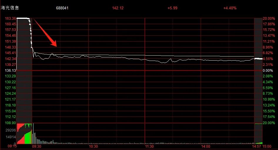 海光信息和中科曙光复牌,今天海光的竞价成了最大的问题,这个票本身在科创板就占了很大的权重,所以导致科创板指数直接高开了0.6%,也是因为这个动作,导致指数来到压力位,而量化就选择了直接砸盘!