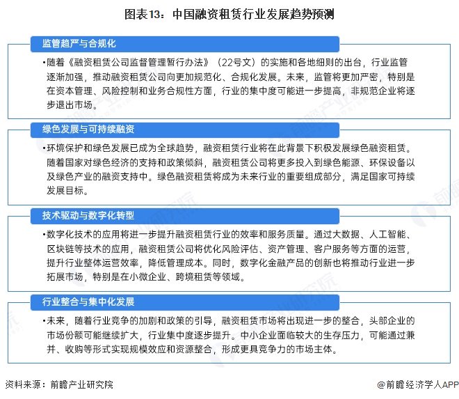 总体来看,未来中国融资租赁行业将朝着更加规范化、绿色化、数字化以及集中化的方向发展,同时逐步适应政策和市场的变化,推动行业的可持续增长。