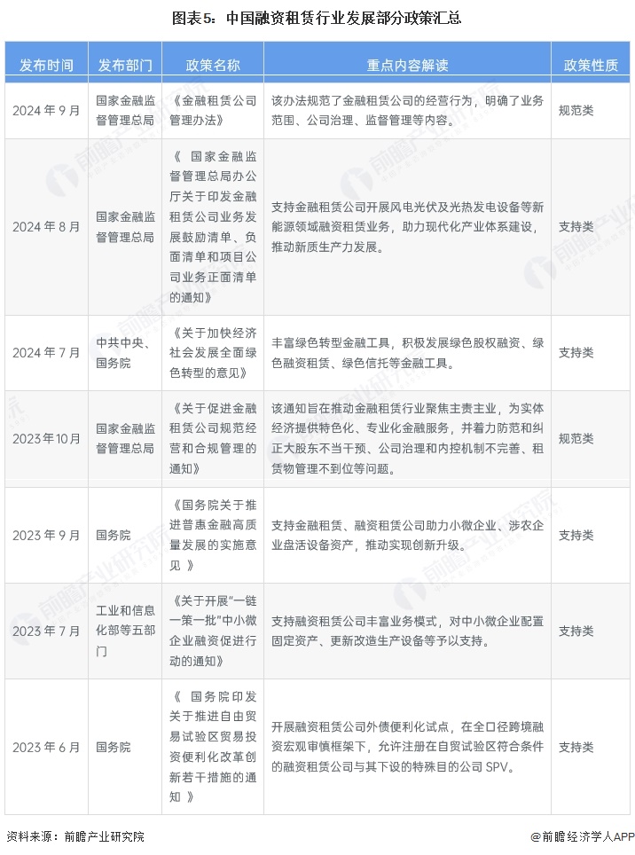 近年来,中国政府显著加大了对融资租赁行业的政策支持力度,尤其在绿色融资、装备融资及中小企业融资等领域给予了重点关注。同时,为规范融资租赁公司的经营行为、防范金融风险并促进行业的健康有序发展,政府也相继出台了一系列监管政策。