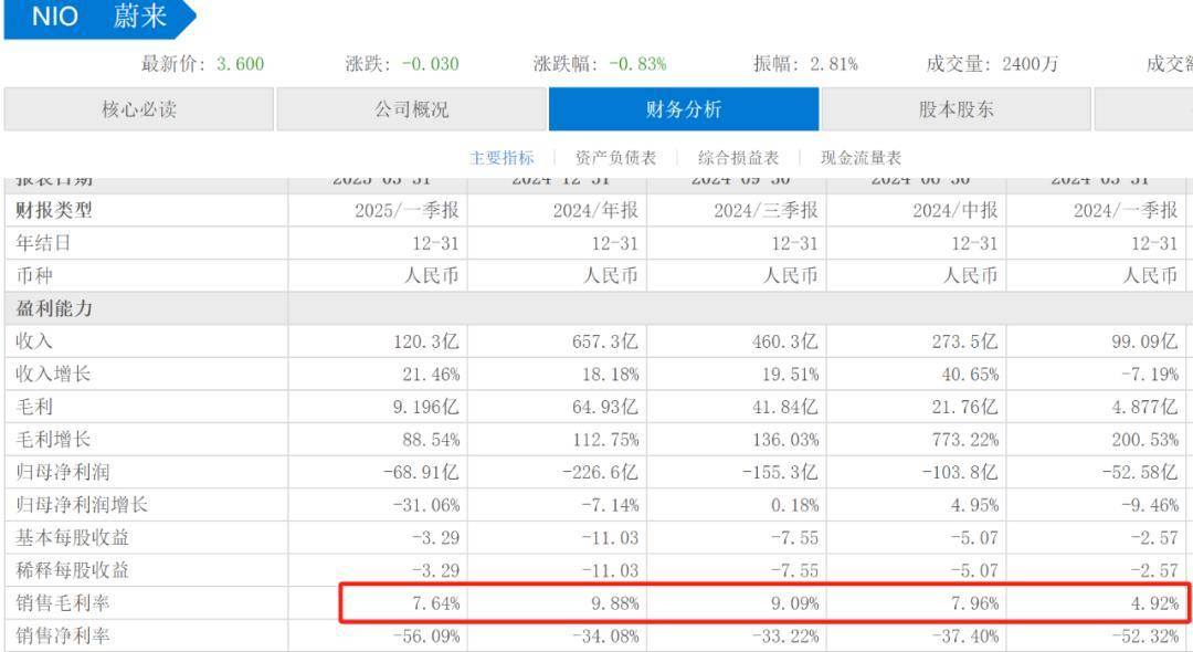 近日,蔚来发布2025年一季报。财报显示,一季度蔚来营收120.3亿元,同比增长21.46%,净亏损达68.91亿元,较去年同期却激增了31.06%。创下自上市以来单季亏损第二纪录,仅次于2024年第四季度单季度净亏损71.32亿元,资产负债率升至92.55%,同样为历史最高,股东权益首次转负,账上260亿元的现金,如果按今年一季度的亏损来计算,都不够支撑4个季度。