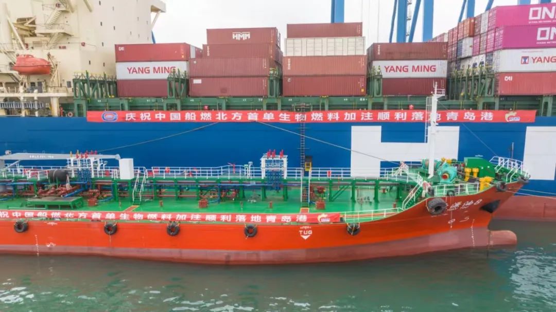 记者从山东港口获悉,近日,山东港口青岛港前湾港区109泊位,“大源油8”轮成功为国际巨轮“HMM VANCOUVER”加注1300吨B24生物燃料油。这标志着中国北方港口首单国际航行船舶生物燃料油加注业务在山东港口落地,对于推动绿色港航产业发展、口岸服务能级提升具有重要里程碑意义。
