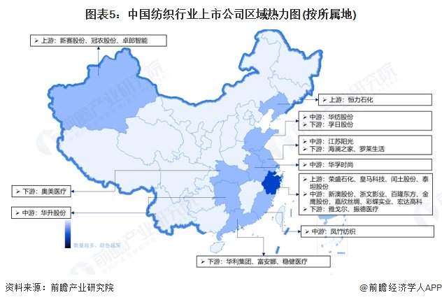 中国纺织业重点企业主要集中在浙江、江苏、广东、福建、山东等省份。尤其是江浙地区,是中国纺织产业的核心地区。这些地区不仅拥有大规模的纺织生产基地,还吸引了大量的纺织机械制造企业。同时在对外贸易、产业配套基础和人才吸引等方面具有明显竞争优势。