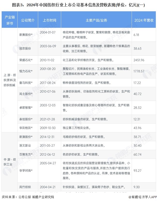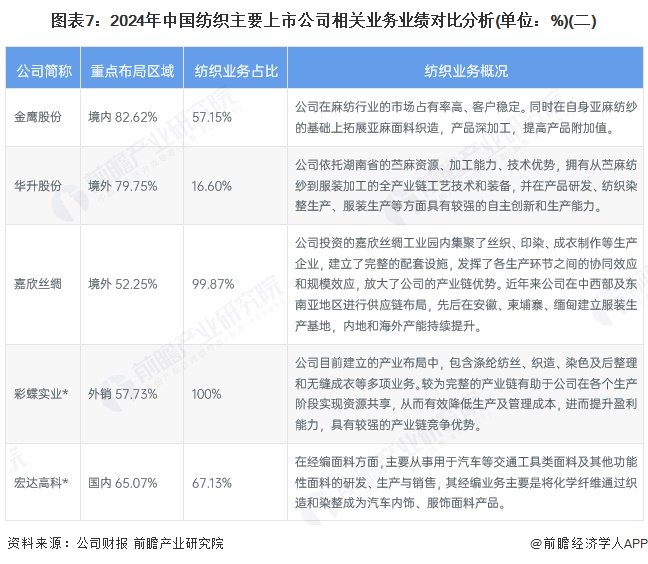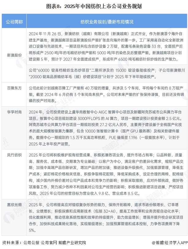 3、中国纺织行业上市公司业务规划对比