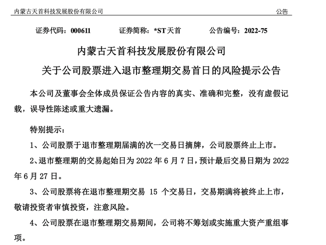 6月7日,*ST天首的简称更变为“天首退”,正式进入退市整理期。退市整理期前夕,公司股东与管理层的矛盾进入公开的白热化阶段。